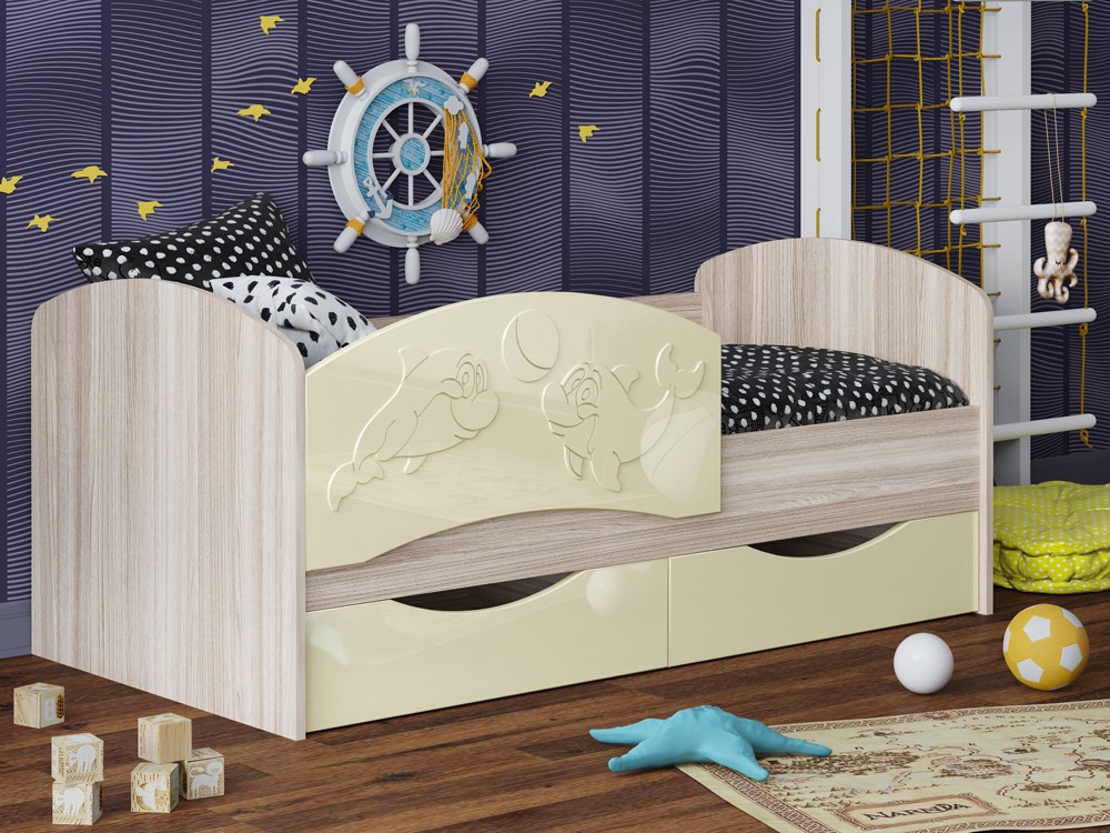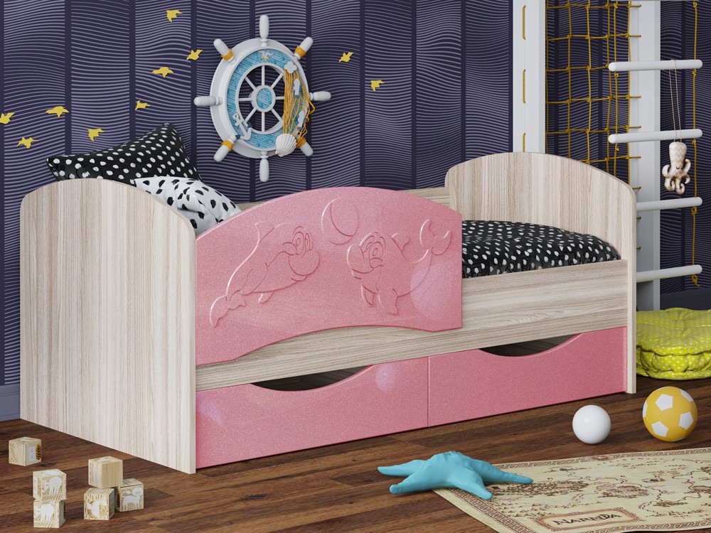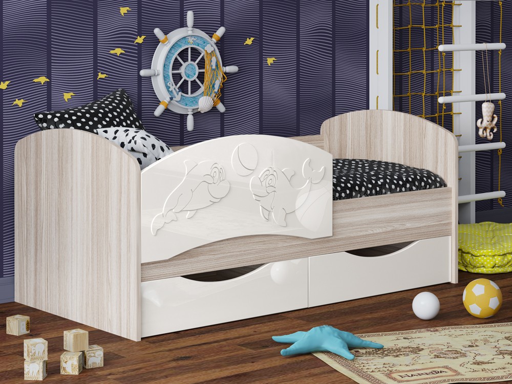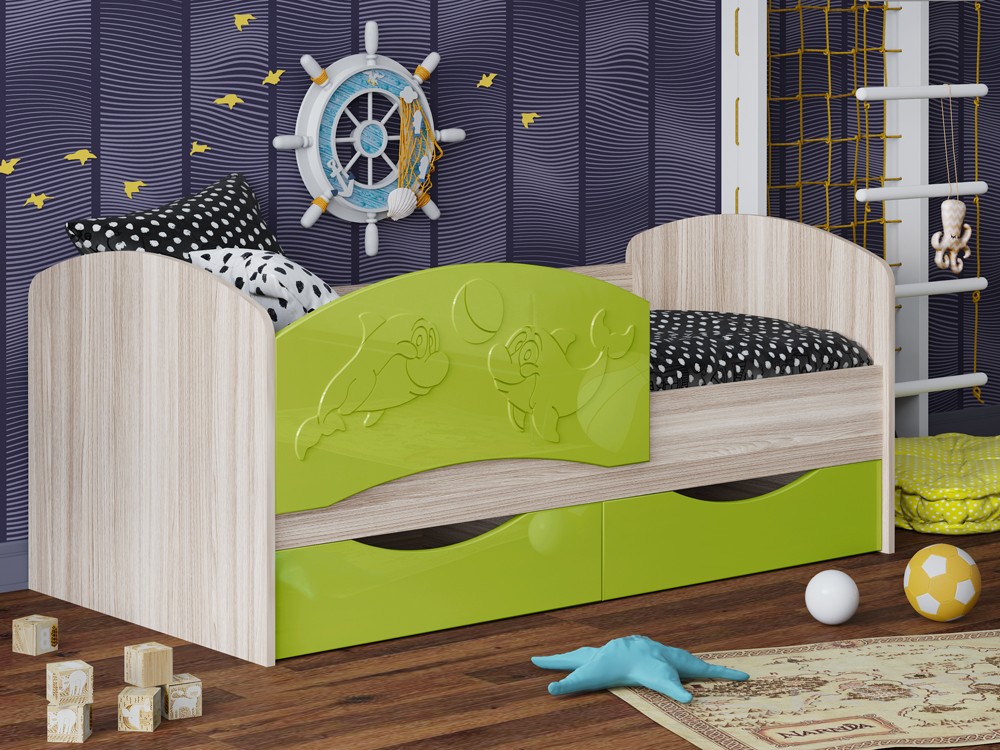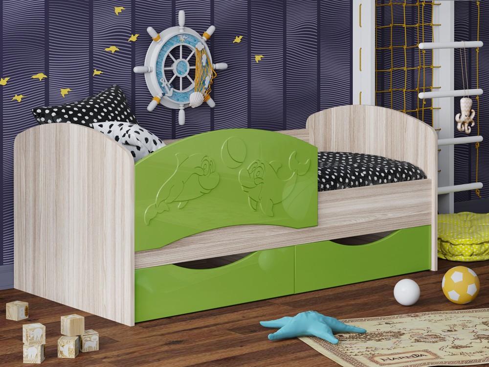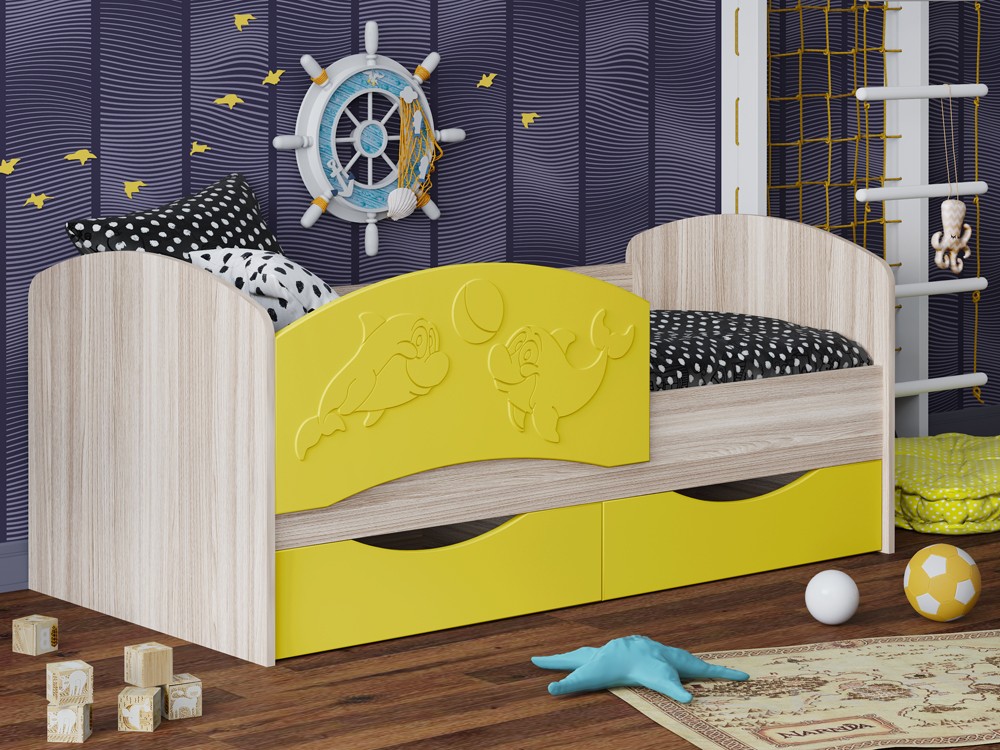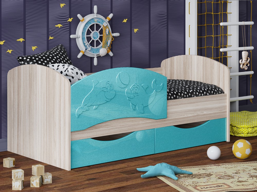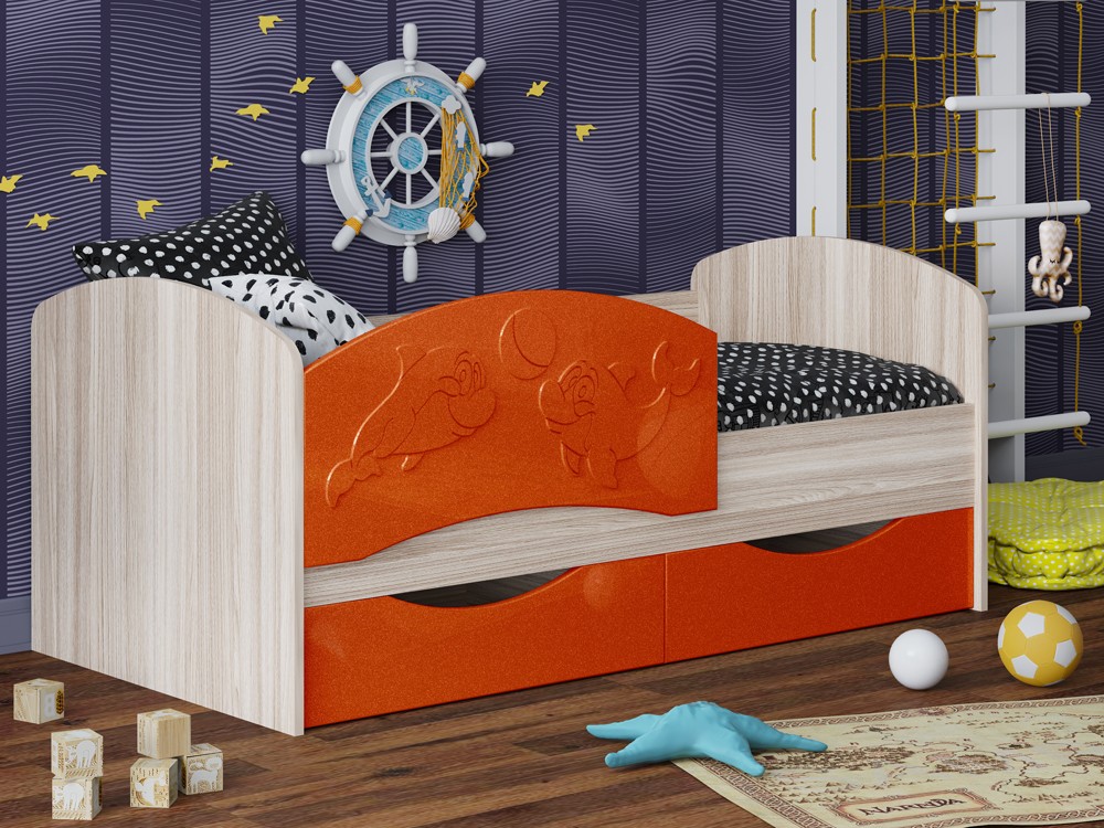 Детская Кровать Дельфин-3 МДФ с фасадом 3D/Разные Цвета