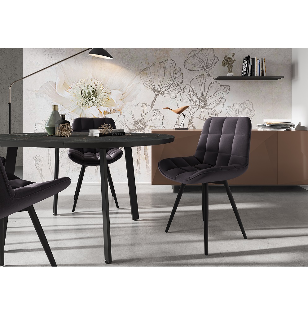 Стул Бруно со спинкой правильной формы обеспечит комфортную посадку и нахождение за обеденным столом. Материал обивки - велюр. Опоры металлические черные. В комплекте 2 шт.