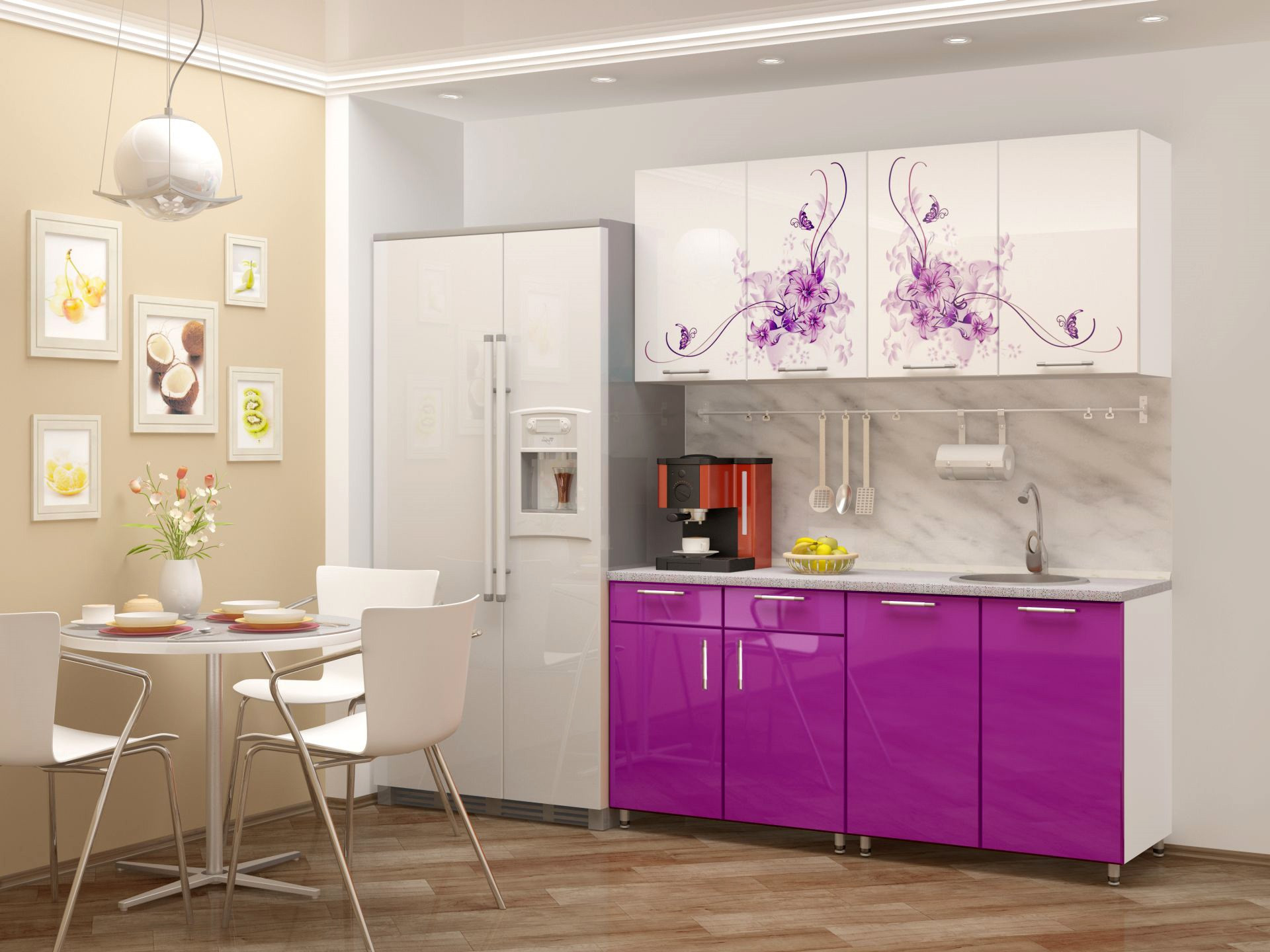 С фотопечатью Вдохновение МДФ выполнена из качественного и экологически чистого материала. Фасады дверок напольных шкафов кухни с фотопечатью Вдохновение насыщенного сиреневого цвета и глянцевой поверхностью. Дверки навесных шкафов кухонного гарнитура с фотопечатью Вдохновение украшает фантазийный рисунок с цветами в сиреневой гамме на белом фоне. Гарнитур не имеет нижних цоколей, нижние шкафы стоят на ножках, выполненных, как и вся фурнитура в едином стиле. За счет модульной системы кухню с фотопечатью Вдохновение легко размещать как с правой стороны от окна, так и с левой. Кухонный гарнитур с фотопечатью Вдохновение станет настоящим вдохновением на совершение гастрономических подвигов.