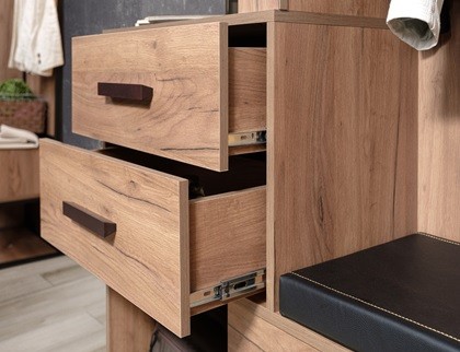 Комбинированная тумба для обуви Nature 89 - удобная и продуманная система хранения обуви для всей семьи. Тумба состоит из трех выдвижных ящиков и отделением за распашной дверцей. За распашным фасадом Контур находятся две полки для хранения обуви, которые находятся наискосок. Полки регулируются по высоте, для этого полкодержатели необходимо установить в подготовленные отверстия. Модуль можно собирать как на левую, так и правую сторону. Особенности ручки из массива березы левосторонняя и правосторонняя сборка выдвижные ящики на шариковых направляющих регулируемые опоры