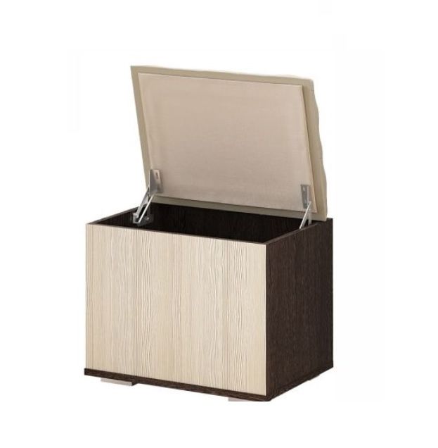 Фасад тумбы выполнен из ЛДСП цвета Венге и Лоредо, верхняя крышка (сидушка)обтянута эко кожей с прострочкой. Сидушка легко открывается вверх и фиксируется при помощи специального механизма. Ширина: 502 Высота: 435 Глубина: 370 Стиль интерьера: Модерн